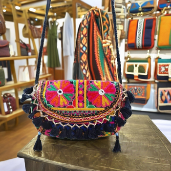 Sac de style dame brodé à la main en coton à la mode avec broderie décorative à fermeture éclair