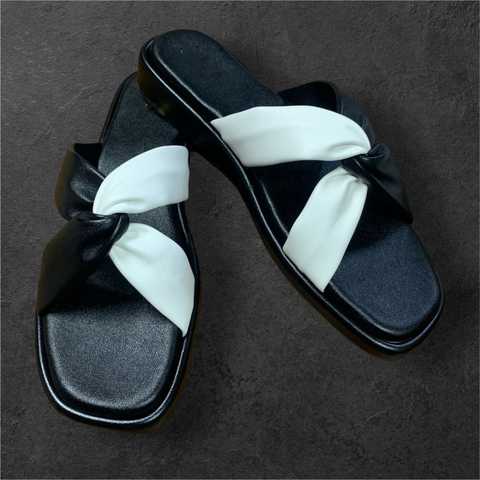 Đen & Trắng Knot dép phẳng với đệm thoải mái
