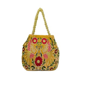 Bền Hồng Hoa chủ đề gota patti túi xách có thể gập lại potli túi với mềm hoa gương và dây rút đóng cửa satin lót